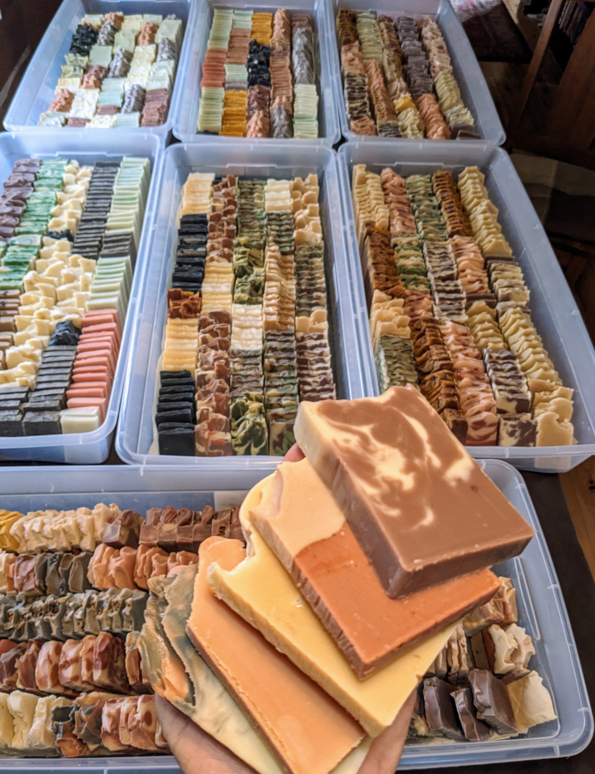 Each bundle has 4-5 different soap varieties. The sale is $7.50/bundle or 3 bundles/$20, same price as last year. That’s 70% off my regular soap prices!